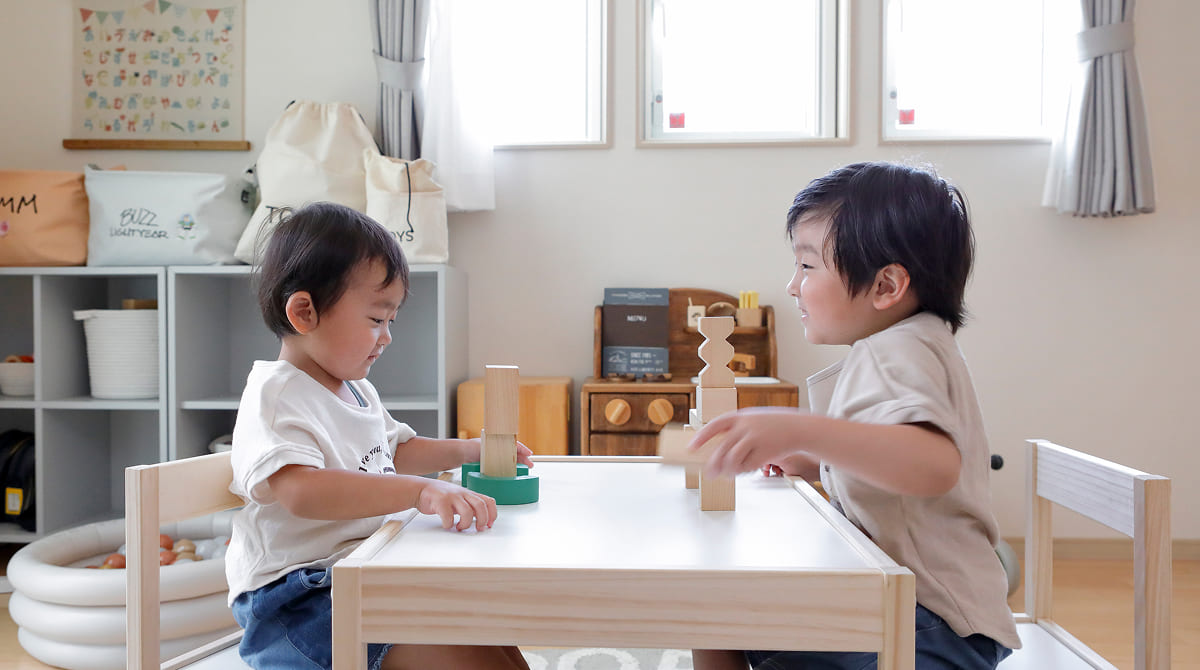 全館床暖房はふく射熱(遠赤外線)式の暖房なので、家中の床を暖めるだけでなく、壁や天井にも暖かさを伝えます。そこから出るふく射熱が部屋全体をムラなく暖めるので室内の上下で温度差がなく、エアコンのように上の方は暑いのに足もとが冷えるという悩みも解消します。特に、大人より低い位置にいる小さなお子様は、大人と同じ体感温度で快適に過ごせるのもメリットです。
