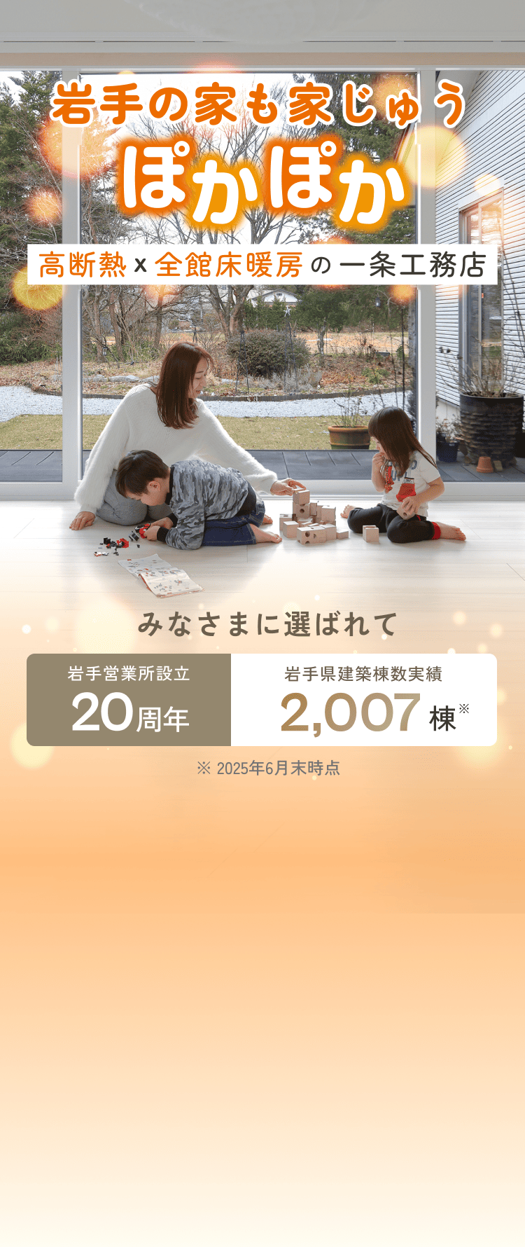 岩手営業所設⽴から20年を超える⼀条⼯務店は、住宅の性能と暮らしの質にこだわるメーカーとして、岩手のさまざまなニーズを叶える快適な住まいをご提供。これまでの毎⽇を⼤きく変える暮らしがここにあります。
