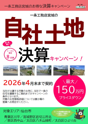 【自社土地決算キャンペーン】2026年4月末契約まで最大150万円プライスダウン!