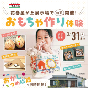 【参加無料】 ⭐花巻展示場で毎日開催⭐おもちゃ作り体験&お菓子詰め放題