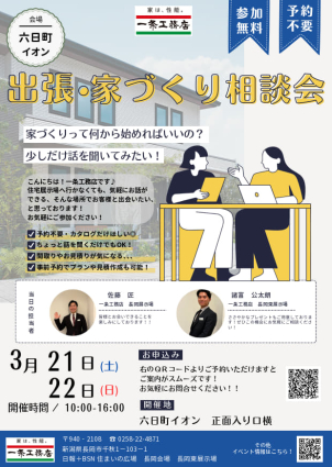 3月21日(土)・22日(日)限定!六日町イオンにて出張・住宅相談会開催決定!