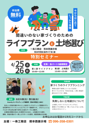 4月25日(土)26日(日)2日間開催!!間違いのない家づくりのための【ライフプランと土地選び】特別セミナー開催!! ★要予約