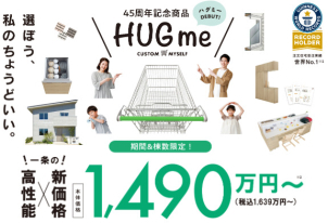 一条工務店は2023年に設立45周年を迎えました。45周年記念新商品『HUGme(ハグミ―)』全国で販売開始。業界最高レベルの性能と充実の標準仕様を本体価格1,490万円(税込1,639万円)~のリーズナブルな価格で実現しました。