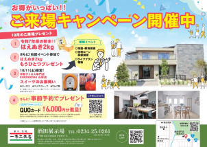 期間中に新規ご来場いただいたお客様に、はえぬき新米2kgをプレゼントいたします! 特別イベントにご参加いただくと、さらに2kgをプレゼント! この機会にご家族皆様で新米を召し上がってください!