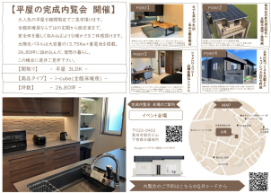 大人気の平屋の完成内覧会を完全予約制で開催します! 施工面積26.80坪/3LDK /i-cube 厳寒期の岩手県、リアルサイズの建物で【全館床暖房の暖かさ】をご体感頂けます。 ※下記Q.Rコードよりご予約頂けます。ご予約の際には「内覧会参加」の旨をご記入下さい