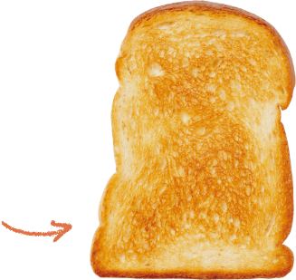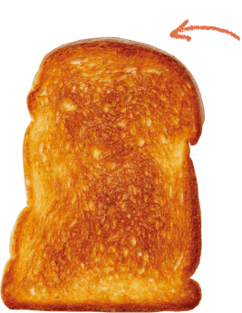食パンを焼くときのコツは、水分が蒸発しすぎないように、トースターをしっかり予熱して高温で素早く焼くこと。これで外はパリッと中はもっちりした理想のトーストになります。高級食パンを焼くときは、焼き色がつきやすいので注意して。