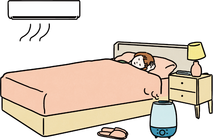 適切な温度・湿度も非常に重要。室温が低すぎるとドライアイや眼痛が起こりやすくなります。また、寝ている間は涙がほとんど分泌されないため、湿度が低いとどんどん目が乾燥します。加湿器などで湿度を調節し、エアコンは風が直接顔や体に当たらないように設定しましょう。