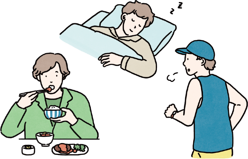 糖尿病などの疾患が、重篤な目の不調につながることも。栄養バランスの整った「食事」、適切な時間の「睡眠」、日常的に体を動かす「運動」など、全身の健康を支える毎日の規則正しい生活があってこそ、目も守られます。改めて、自分や家族の生活を