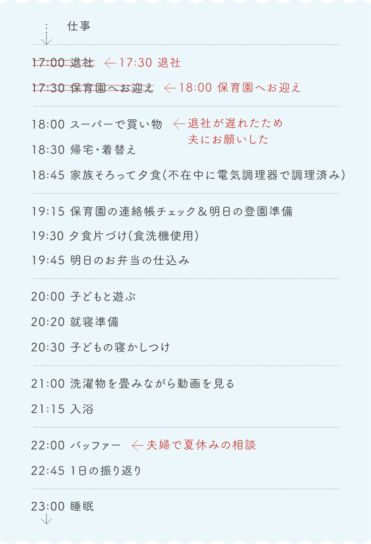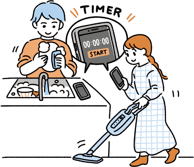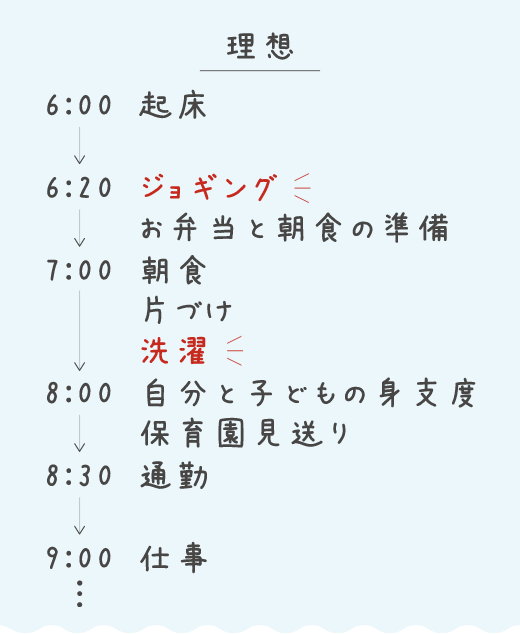 ● 例えば、家電を使って所要時間を短縮する、余裕がある人に分担してもらうなど、1日のなかに予定が収められる方法を考える