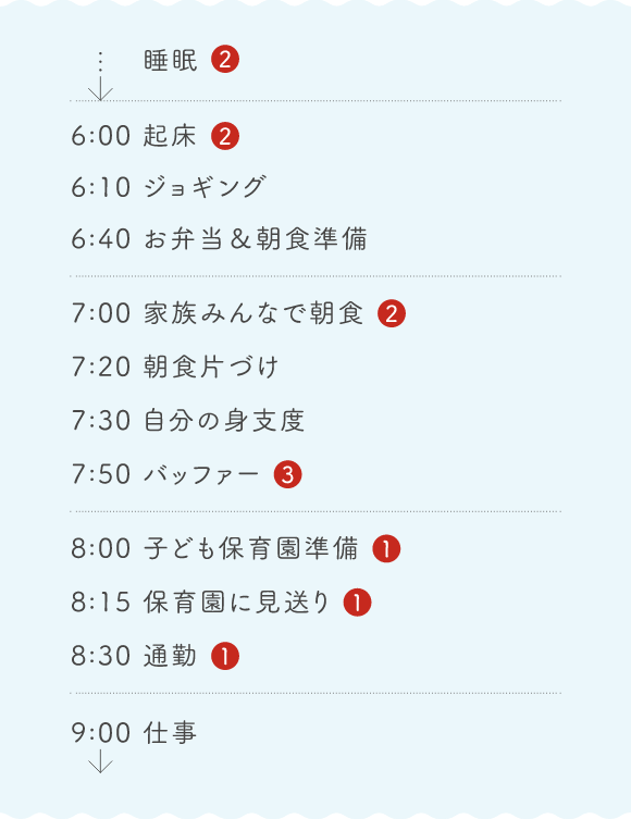 理想的な1日の予定は極力崩さない。どうしても無理しないといけないイレギュラーな状態も、1週間以上は続けないように