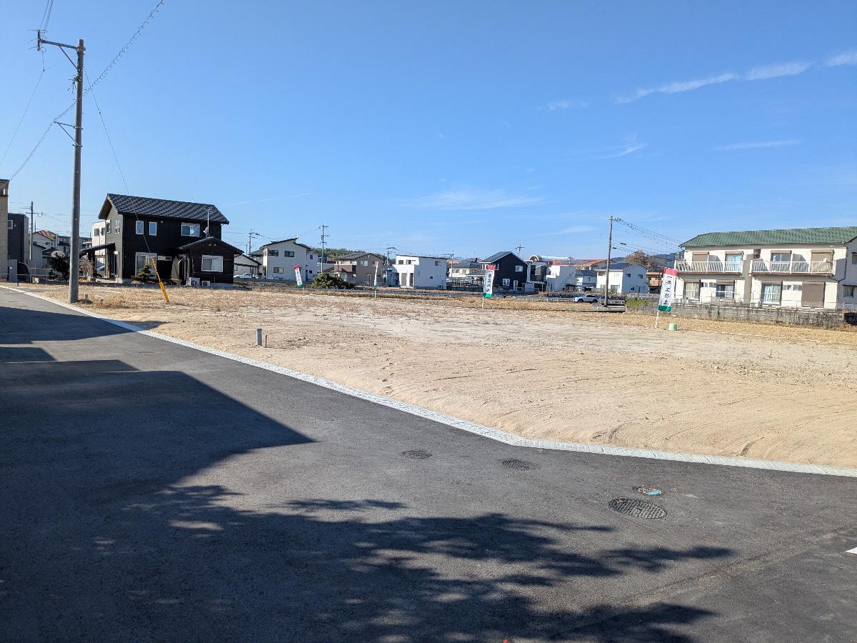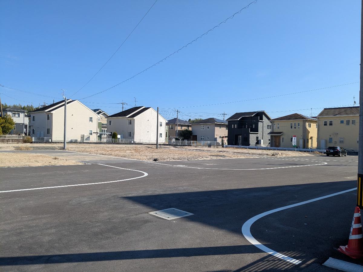 築山小学校まで徒歩7分の好立地に、平屋建築が可能な全11区画の分譲地が完成しました。道路も広々でお買い物も近く、幹線道路からは離れているため、生活のしやすい環境です。(マルエイ築地店 約550m 徒歩7分など)