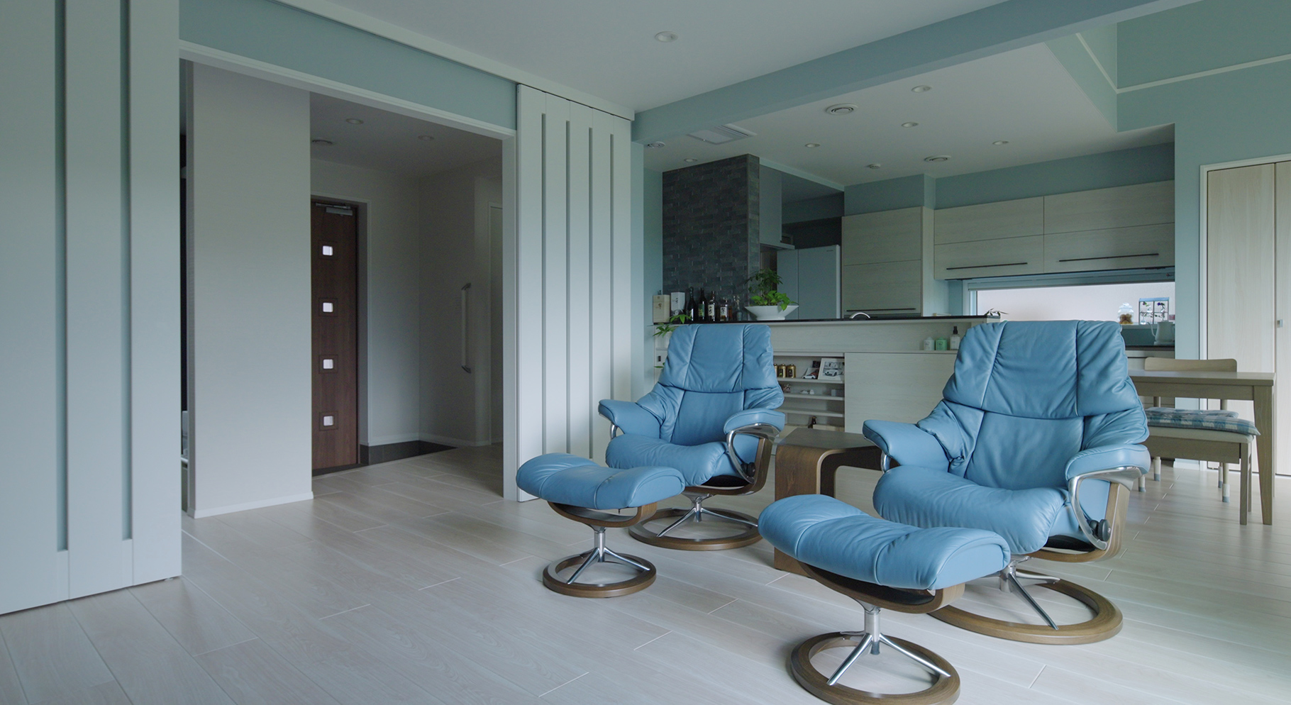 内装はご夫婦が好きなブルーグレーを基調に