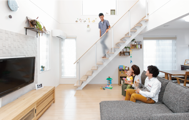 僕は気管が弱くて、以前は冬になると、のどからカゼをひいてたんです。 前の家は寝室にFF式のファンヒーターがあって、そこから冷気が入ってくるような感じでした。 なので、スイッチを入れていないときはバスタオルをかけたりして。 この家は家中の温度差がないからか、まだ一度もカゼをひいてないんです。 子どもたちもいつも元気ですし、これからも健康的に育ってくれたらと思いますね。
