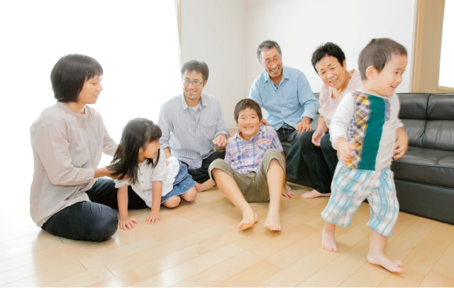 二世帯住宅を建てようとなって、一条の展示場に行ったら、「なんだろう?ストーブもないのに暖かいなぁ」って。 スリッパを履かなくていいのも不思議で。前の家も床暖房があったんですけど、ダイニングテーブルの下だけ。 他の床は、じゅうたんを何枚敷いても冷たくて。でも、この家はどこの床も暖かいし、家中が床と同じで、 ちょうどいい温度になってる感じなんです。