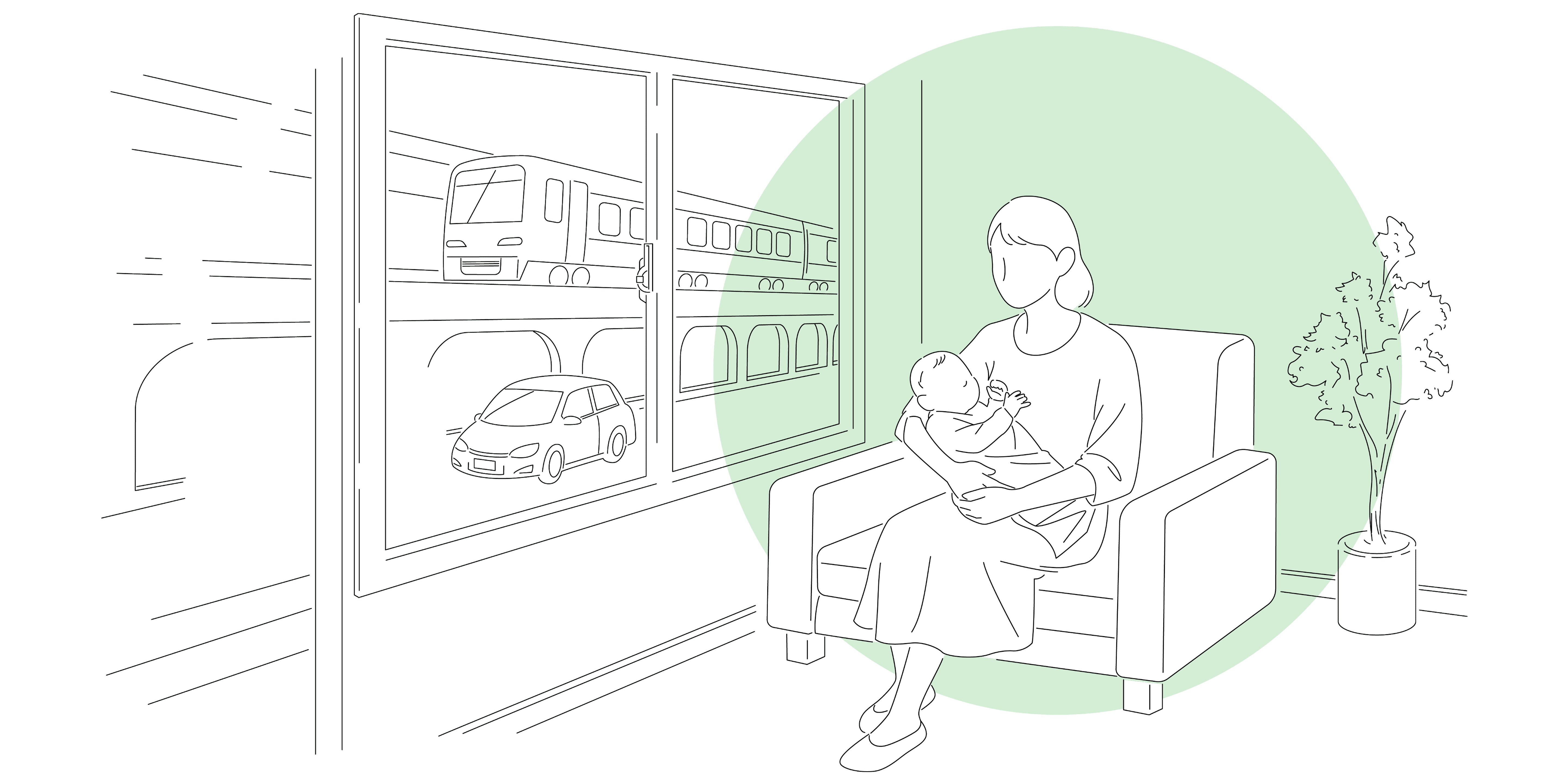窓ガラスが音の侵入を防ぎます。外の騒音を「入れない」、さらに室内の音を「漏らさない」ことで静けさを実現します。