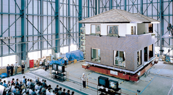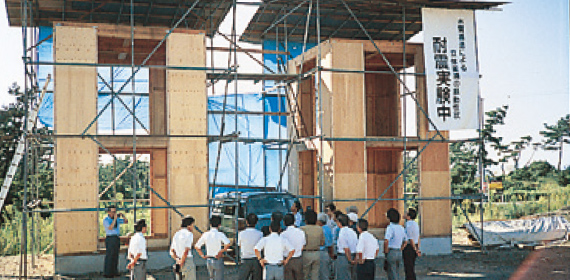 実物大の建物で実験して耐震性を確かめる、というポリシーを貫き、