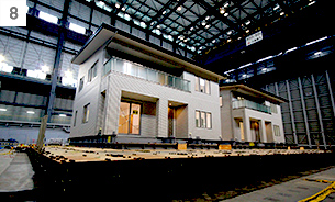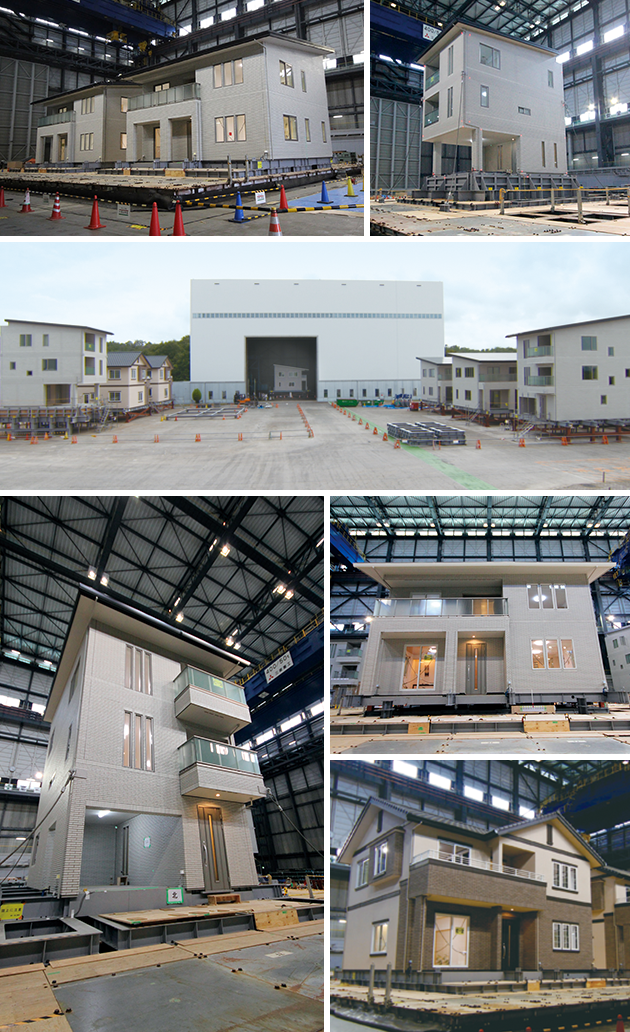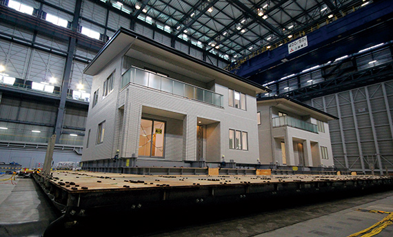 一条は、実際に販売する商品タイプで実験を行っています。2階建て、3階建て、1階がガレージのタイプなど、さまざまな構造の建物で実験を実施。地震に強く、安心であることを実証しています。