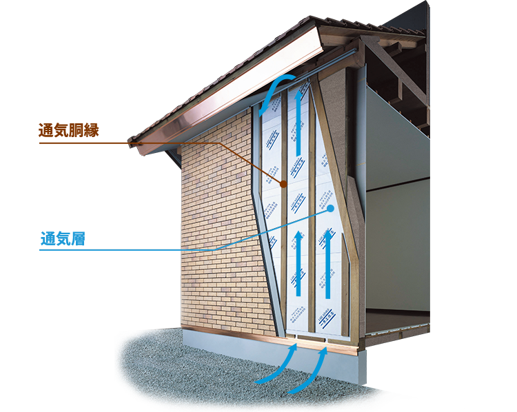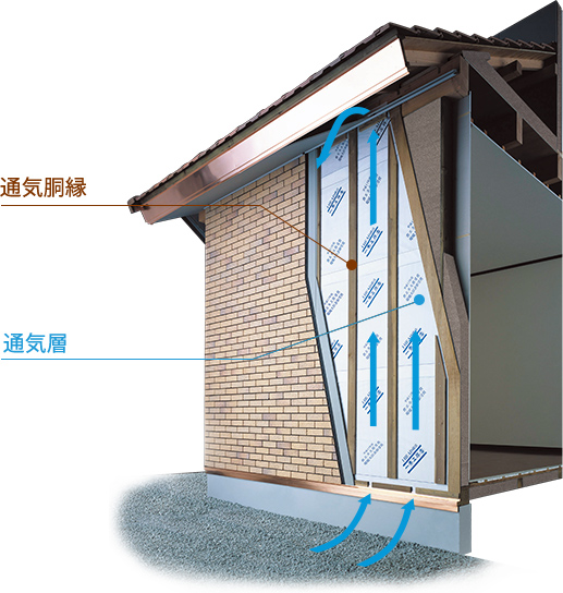 外壁や屋根裏、床下など、家のあらゆる場所に空気の通り道を確保し、住まいの劣化を防ぎます。