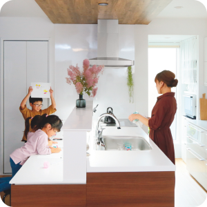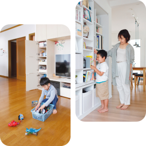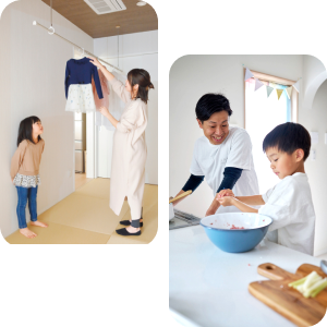 休みなく続く子育てには、うれしいことばかりでなく大変なことも。そんなあれこれを、住まいが安全・快適・健康面でアシスト。子どもの自立やお手伝いを促す環境も自然と整います。