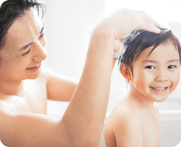 入浴が親子のスキンシップの場に。湯冷めしにくいから、ゆっくり拭いて着替えやケアができます。
