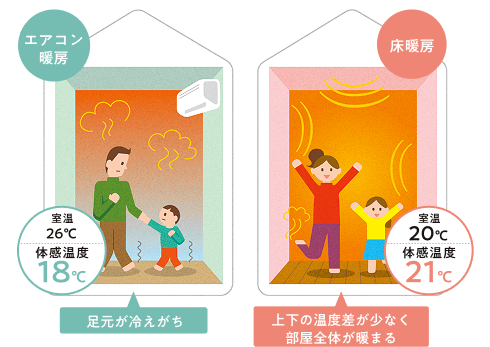 床暖房でいつでも寒くない。