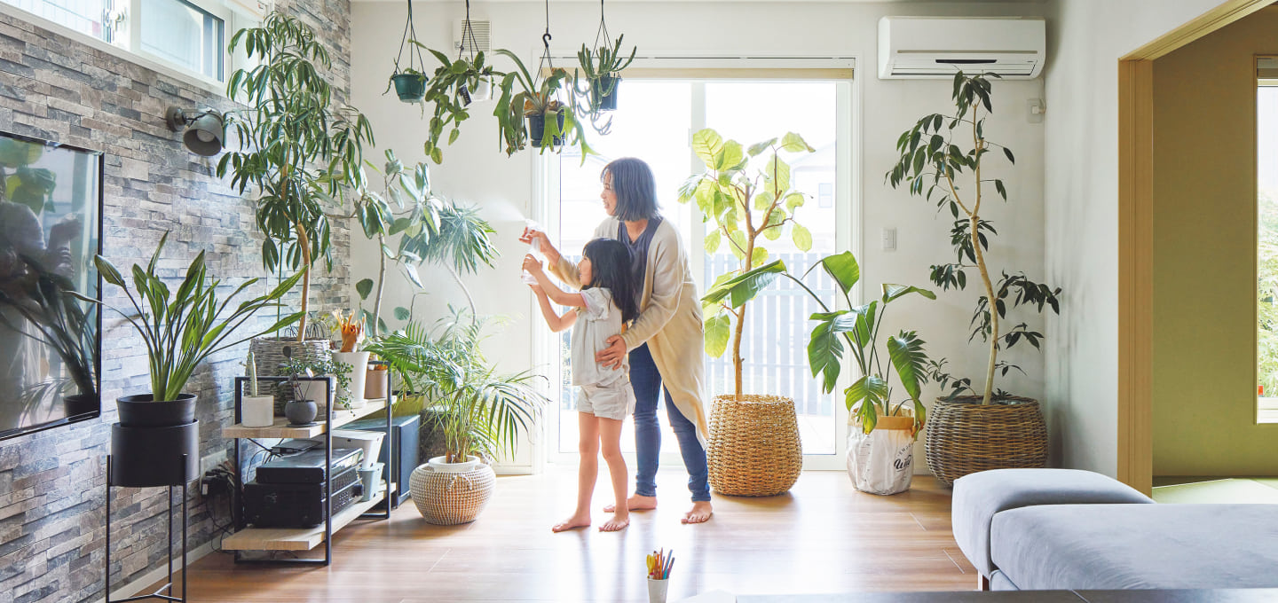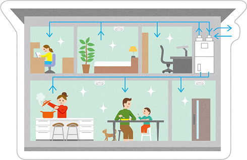 心地いい温度や湿度を保ちながら、家中の空気を総入れ換え。目の細かい換気フィルターが新鮮な空気だけを取り込み、花粉もホコリもシャットアウト。子どもからご年配の方まで安心して過ごせます。