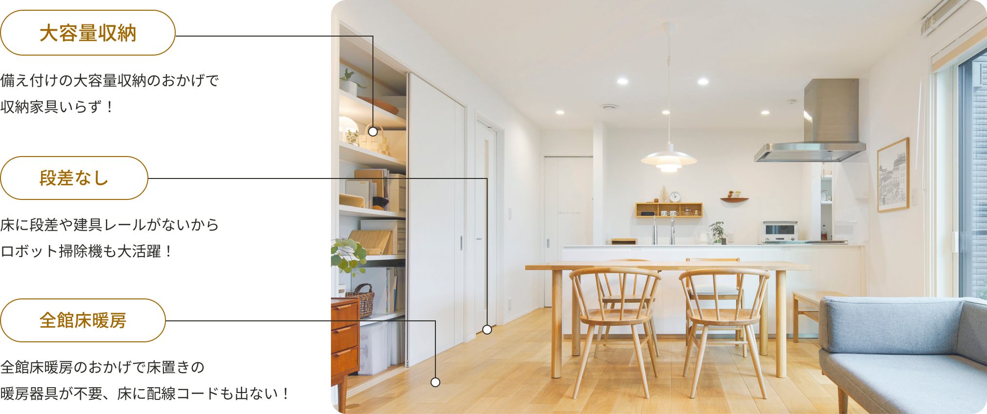 ヒミツは、収納力と床暖房。