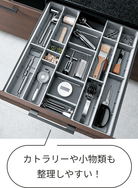 適材適所の収納でたっぷりしまえる 適材適所の収納で たっぷりしまえる