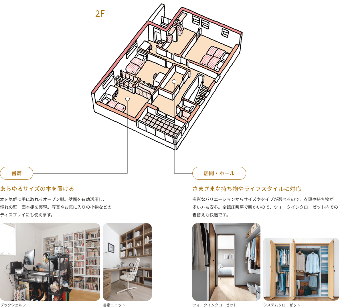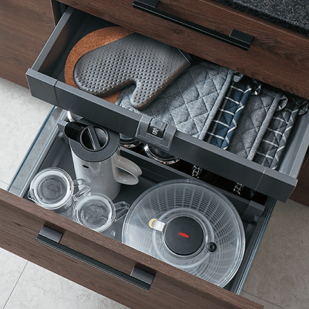 あらゆるエリアで、しまいたいものにぴったりの収納をお選びいただけます。