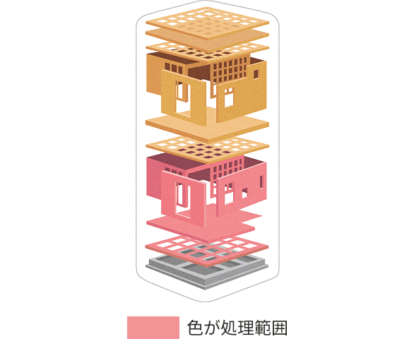 一条の家は、暑さ寒さが出入りするすき間をなくし、家全体を高性能な断熱材ですっぽりと包み込む、まるで魔法瓶のような「超気密・超断熱」の住まい。外気温の影響を受けにくく冷暖房で快適にした涼しさ・暖かさを外に逃がさないので、いつでも快適な室温を保ちます。