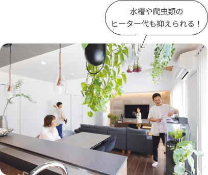 どの季節でも、どの場所でも、快適な室温を保ちながら気になる光熱費はしっかりと抑える。冷暖房効率が良い断熱性に優れた住まいは、「快適」と「省エネ」のどちらも叶えます。