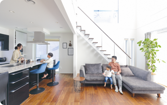 吹き抜けやリビング階段を設けても、気密・断熱性が高く熱を逃さない住まいなら、「開放感」と「快適」の両方が叶います。家族のつながりがより深まり、間取りの選択肢もグンと広がります。