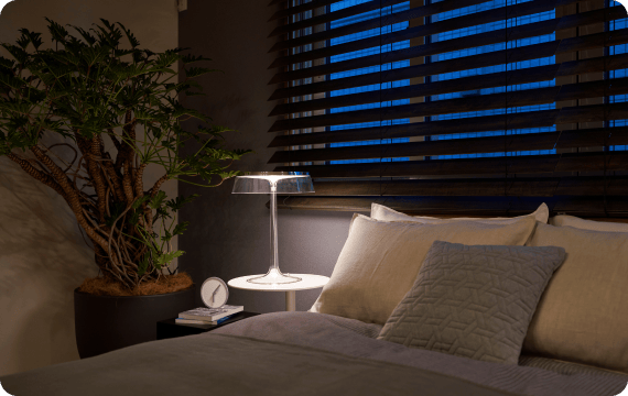 夜勤明けなど昼間に寝るときに気になるのが日の光。窓の断熱性を高めるハニカムシェードには、外の明るさを遮断できる遮光タイプも。どんな時間帯でも寝つきやすい環境をつくれます。