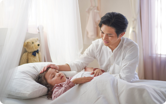 喉やお肌の乾燥は、冬の睡眠時のお悩みのひとつ。寝不足や肌荒れの原因にもなります。「ロスガード90 うるケア」なら、面倒な操作もなく家中を加湿してくれるから、乾燥を気にせずぐっすり眠れます。