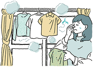 ニオイの原因となる菌の繁殖を防ぐには、洗濯物を早く乾かすことが大事。全館換気システムが家中の空気を循環させ、洗濯物から蒸発した水分を運び去ってくれるから、効率的に乾かせ、部屋干し特有の生乾き臭も抑えます。