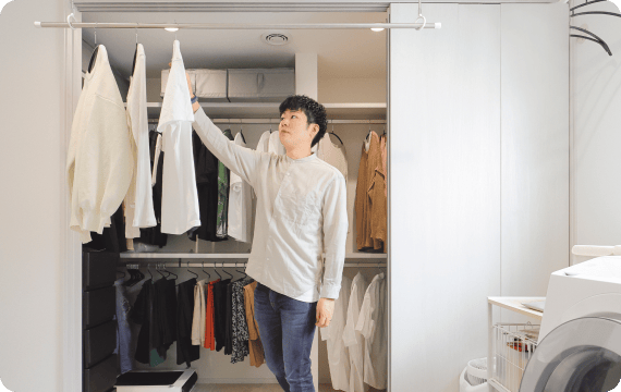 しまい込んでいたら、気づいたときにはカビが生えていた…なんてことも。隅々まで湿度がコントロールされた一条の住まいなら、収納の大敵である湿気やニオイがこもりにくく、保管する際も安心です。