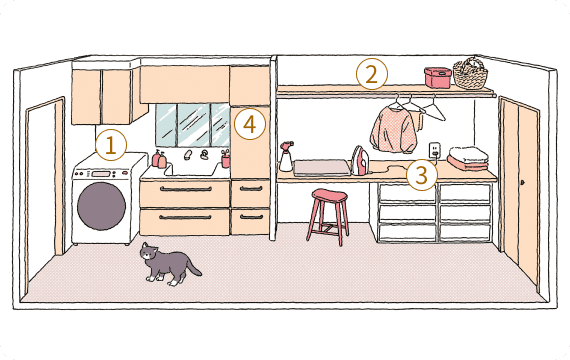 洗濯の動線をひと部屋で完結。